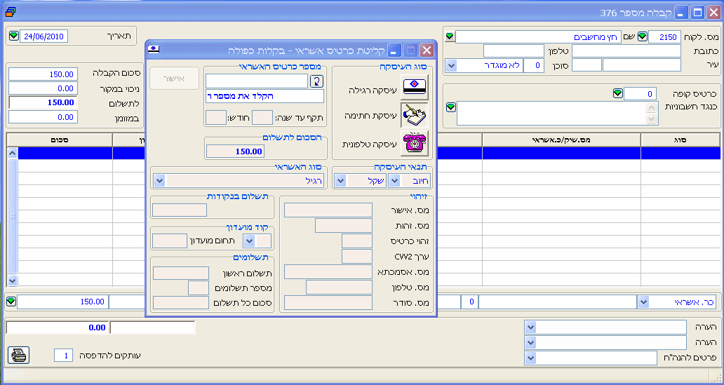 חברת "גפני מוצרי תוכנה בע"מ" משמשת כמפיץ מורשה של תוכנת אשראית. תוכנת אשראית מאפשרת לבית העסק קליטה של תשלומים בכרטיסי אשראי. התוכנה מחוברת באופן שקוף לתוכנה "בקלות כפולה" וכל פעולת תשלום המתבצעת בכרטיסי אשראי, מועברת ונרשמת אוטומטית בקבלה.